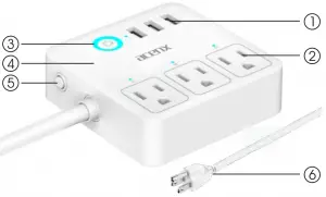 Power Button: it can be used as a reset button, you can press the button to change the flashing speed or reset your smart power strip to the factory default settings.