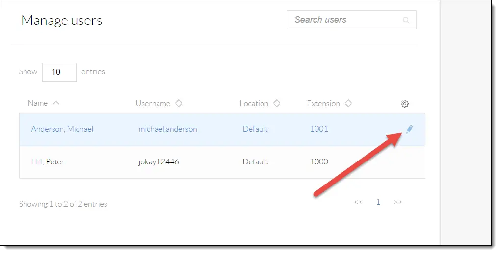 Manage Users - Hover your cursor over the user you are assigning Bria to, and click the pencil icon that appears to the right of their name.