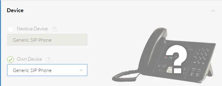 - Select Generic SIP Phone from the drop-down list of the Own Device list.