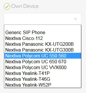 - Select Generic SIP Phone from the drop-down menu of the Own Device list.