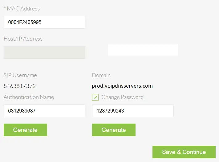 - Click the green Generate button under the Change Password checkbox. Copy the SIP Username, Domain, Authentication Name, and Password onto a notepad, or document them in some way, as they will be important in setting up the X-LITE.
