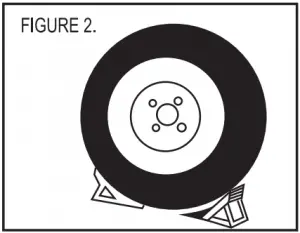 - To prevent further vehicle movement, wheels should be securely chocked with foldable wheel chocks. Refer to figure 1. The tyre to be chocked is diagonal from the wheel being lifted.
