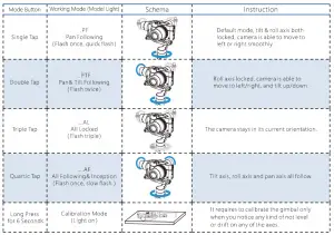 - Calibration: It requires to calibrate the gimbal only when you notice any kind of not level or drift