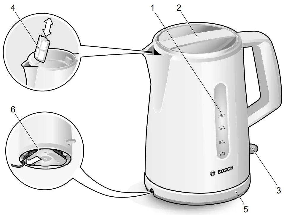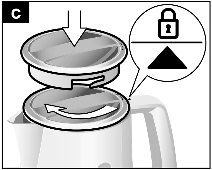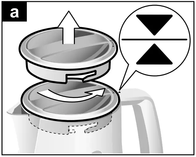 N.B.: Only operate the kettle with the lid closed and the limescale filter inserted, otherwise the kettle will not switch off.