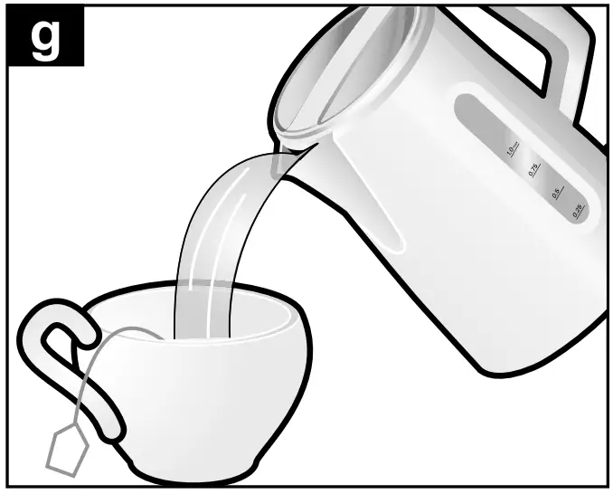 Warning: If you remove the kettle from the base and replace it before the heating process is over, the kettle will not continue to heat the water.