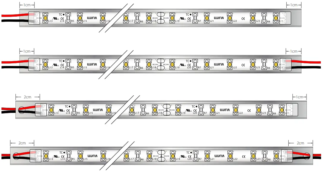 Minimum distance that should be left at the ends, both sides, between LED strip and profile.