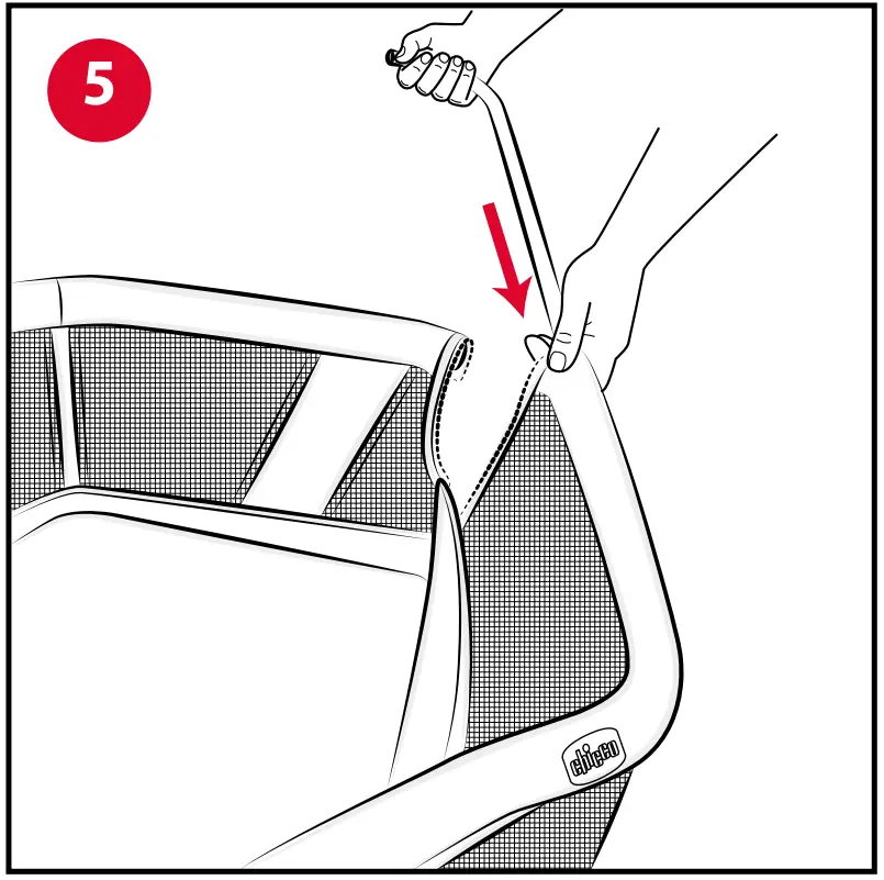 - Insert the tube for the front barrier “A” using the slots on the fabric (Fig. 5).