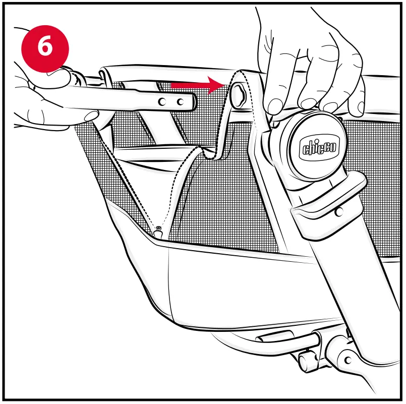 - Lift the tube “A” and attach it to the connections on the crib (Fig. 6).