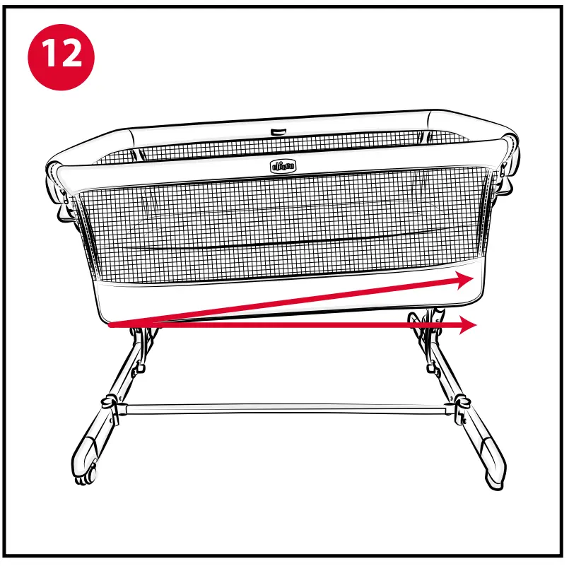 - WARNING: When not attached to the bed, the crib can be inclined by a maximum of 2 positions between one leg support and the other.