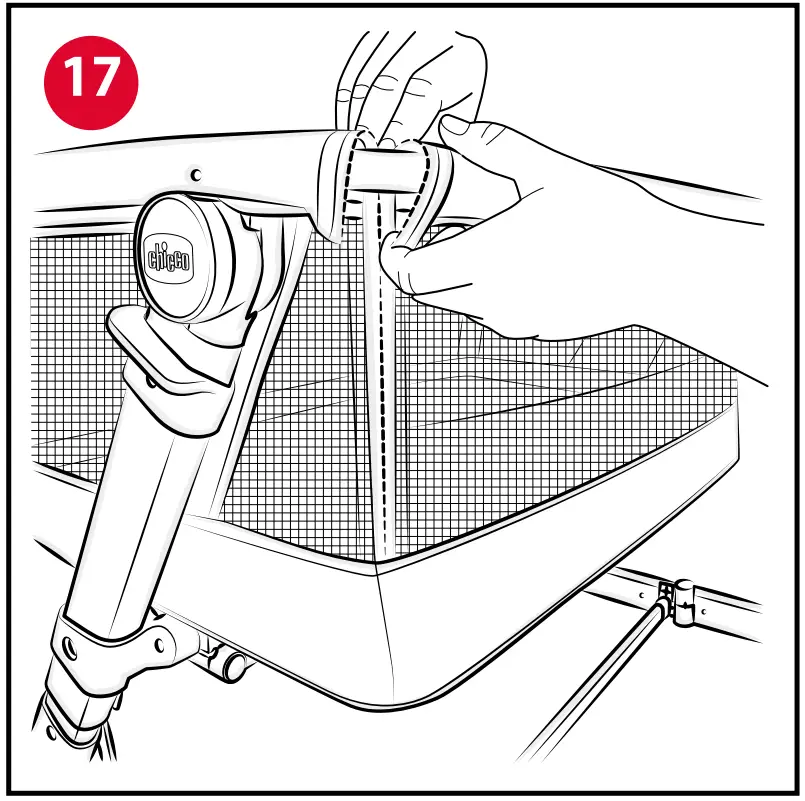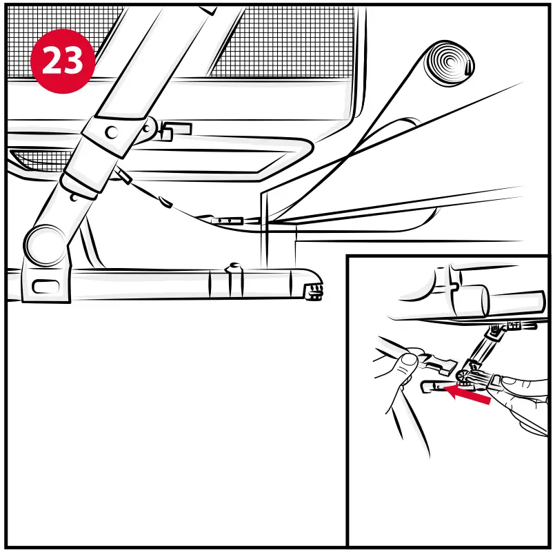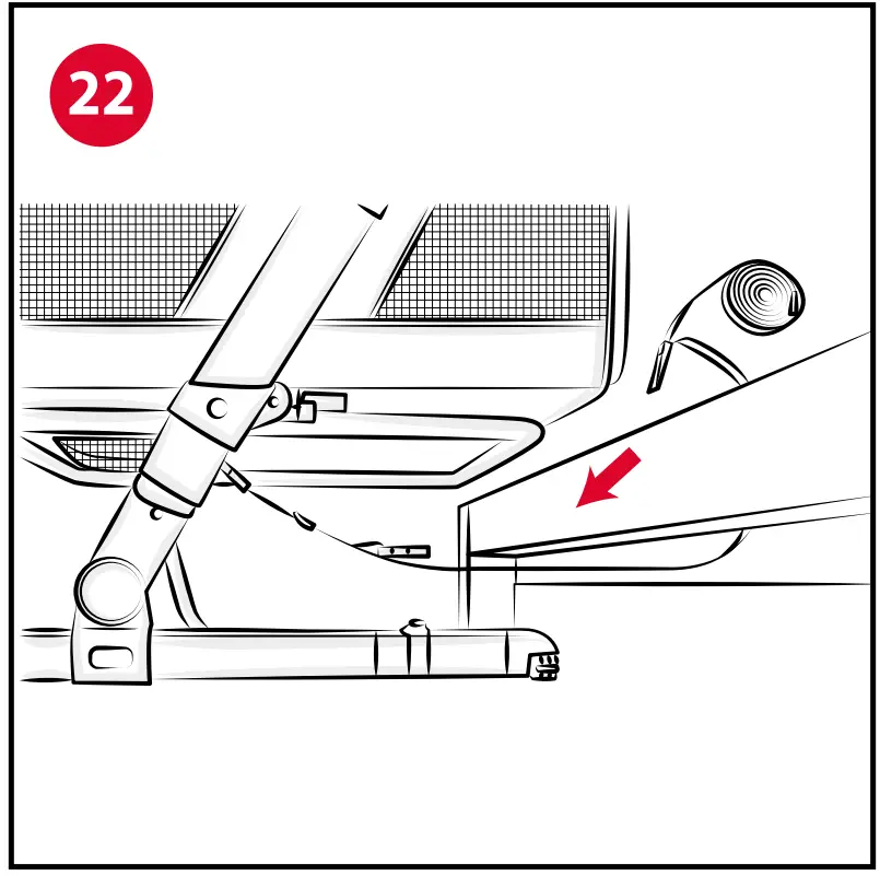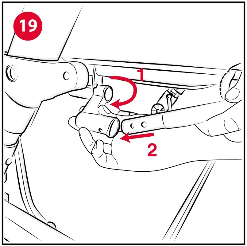 - Once the tube has been completely uncovered on both ends, move it under the base of the crib, rotate the supports “C4” outwards and attach the tube to the supports (Fig. 19).