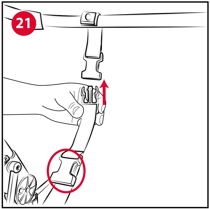 - Connect the forks “F1” to the straps with the buckles “C9” located under the fabric lining on either side. Be sure that the buckle “F3” is positioned above the belt strap (Fig. 21)