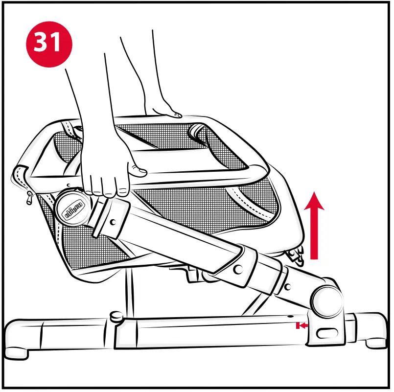 - To reopen the crib simply raise the frame upwards by taking hold of the tubes (Fig. 31)