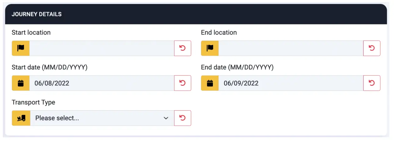 - Transport type – Choose from Land, Sea, or Air.