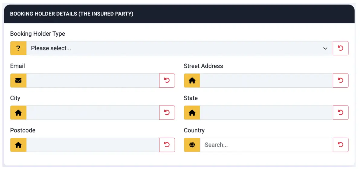 Enter the Booking Holder details: