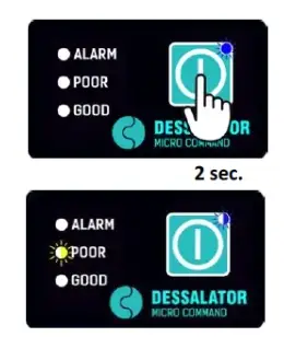 - To start the watermaker from STANDBY, press and hold the button for about 2 seconds. The BLUE LED of the button will start to blink and the buzzer will acknowledge the operation with 2 beeps.