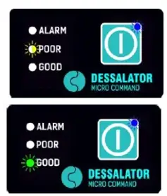 - The RED, YELLOW and GREEN LEDs will show the same indication as on the control panel of the watermaker.