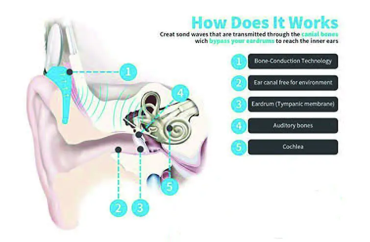 Bone conduction technology creates sound waves by vibrations, sound transmit via temporal bones to your inner ear