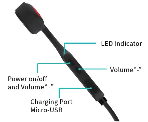 Charge via the micro-USB cable. The indicator light is blue when charging is complete. - Bluetooth Pairing
