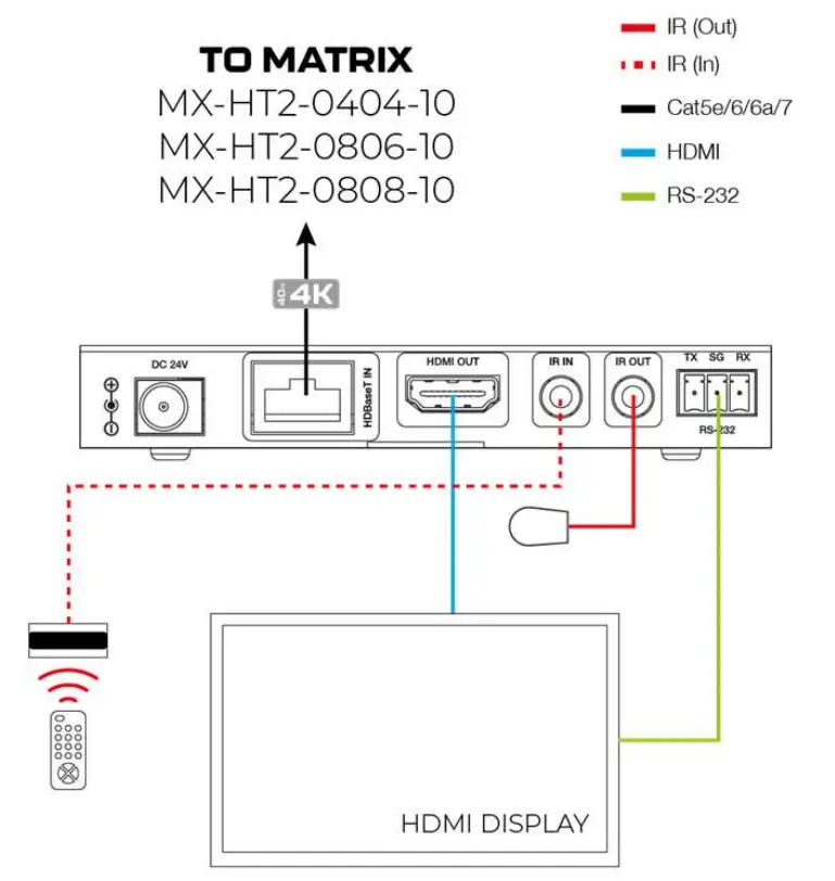4K/60 HDR HDBaseT receiver over single category cable. Capable of sending the latest bandwidth heavy sources over 40m when connected to a compatible matrix device (see specifications for compatibility).