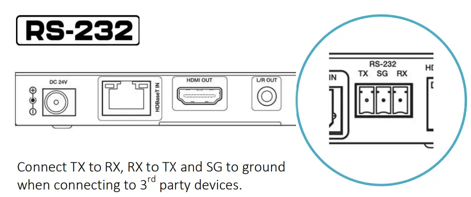 | Secure hardwired bi-directional serial control between source and display. Receiver comes complete with 3-Pin screw type connectors for ease of install. |