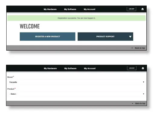 - When registration is complete, your Product will appear in your Account under the My Hardware tab.