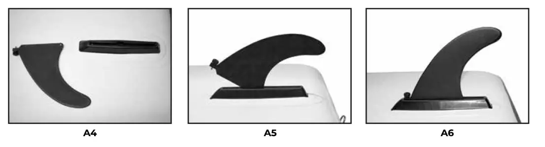- Included with all Paddleboards is a removable fin. The base is pre-attached and the fin is secured in place with a thumb screw. (A4)