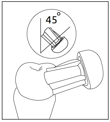 - Place the toothbrush bristles against the teeth at a slight angle (around 45 degrees)