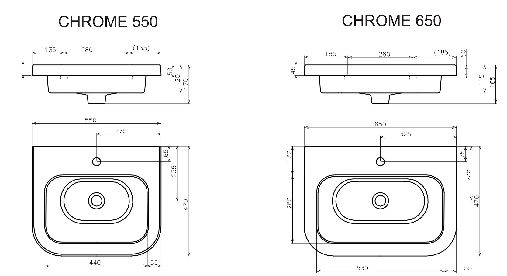 RAVAK UMYVADLO CHROME 550 Ceramic Washbasin