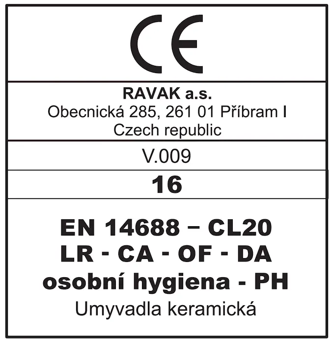 In order to secure the correct functioning, the product may be fitted only to solid walls of bathrooms made of full bricks or concrete for which the enclosed wall plugs with screws are designed. When installing on the specific materials of the walls (porous concrete, hollow bricks or plasterboard) it is necessary to reinforce the place where the washbowl is positioned, by the structure with the sufficient load carrying capacity and use the corresponding wall plugs and screws