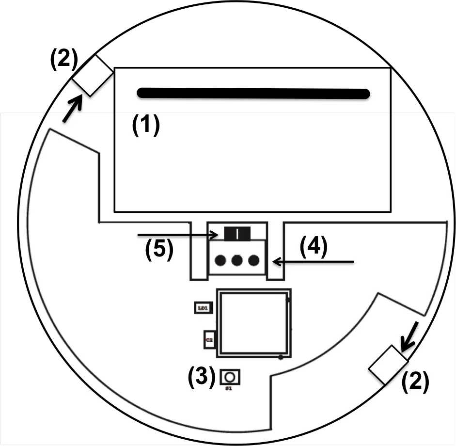 Attach the smoke detector to the bolted base. Make sure that the hooks are correctly seated (arrows in the above picture). If the smoke detector is not correctly positioned on the ring, you will notice that it cannot be turned properly.