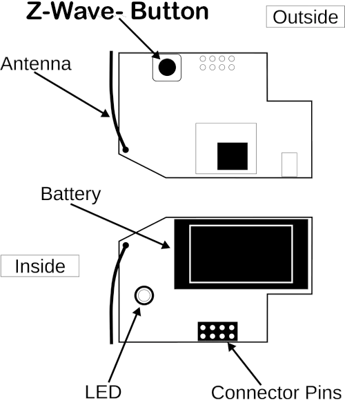 Please insert the Z-Wave module including the battery into the smoke detector main device” first. Pressing the “Z-Wave button” includes and excludes the device. Keeping the button pushed for 3 seconds will force secure inclusion.
