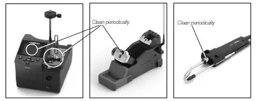 - Periodically check that the metal parts of the tool and stand are clean so that the station can detect the tool status.