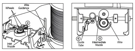 Make sure the wire passes through the Intermediate Nozzle (5) and enters into the Guide Tube (6)