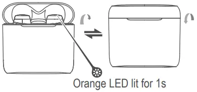 - Both earbuds placed in the case and open the case lid, press and hold the button of the case about 8s to wait until the earbuds Orange LEDs blink rapidly, then left & right will start connecting.