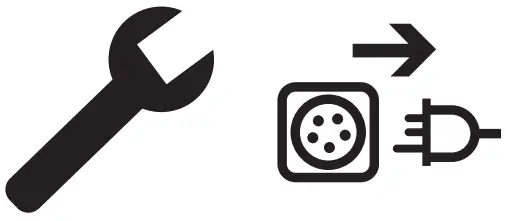 - Ensure the machine is unplugged from the mains, and wait for two minutes before carrying out maintenance work. Inside, voltages and currents are high and dangerous.