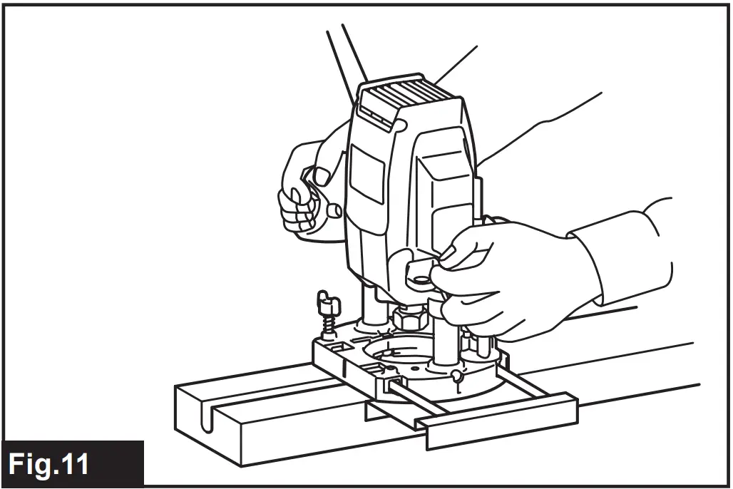 - Make sure the router bit is not contacting the workpiece before the switch is turned on.