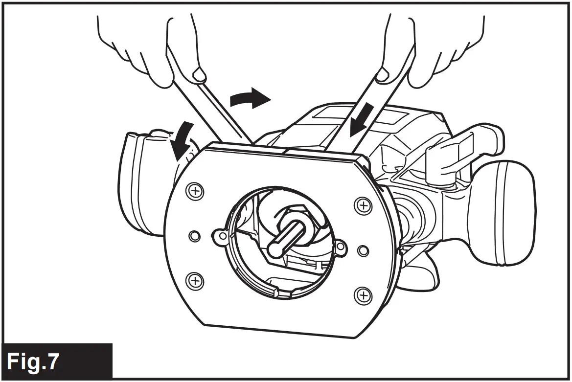 NOTE: When using a bit having total length of 60 mm (2-3/8″) or more, or edge length of 35 mm (1-3/8″) or more, the depth of cut cannot be adjusted as previously mentioned. To adjust, proceed as follows: