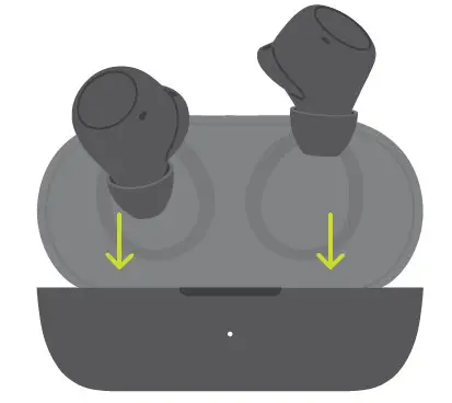 Place the earbuds inside the case to charge the earbuds. Connect USB-C to the charging case.