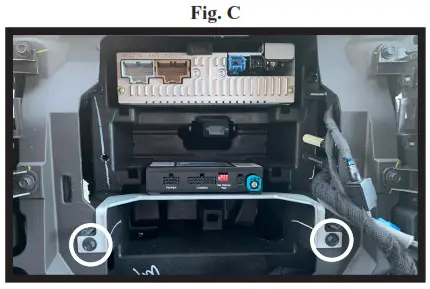 - Secure the mounting bracket into the dash cavity utilizing the two factory 7mm screws near the bottom of the dash opening (Fig. C)