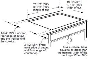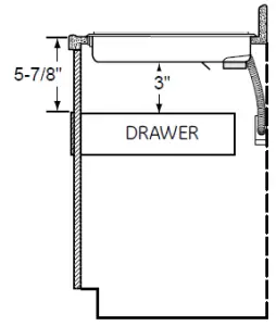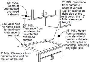 Allow 3” minimum vertical clearance for air space from the cooktop bottom (or 5-7/8” minimum depth from the countertop) to any combustible surfaces, such as the top of a cabinet drawer.