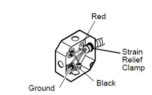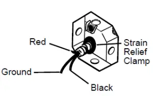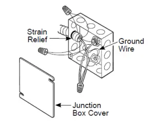 The conduit strain relief clamp must be securely attached to the junction box and the flexible conduit must be securely attached to the clamp.