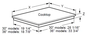 APPROXIMATE COOKTOP DIMENSIONS