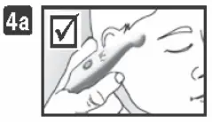 - Place the thermometer’s probe in the center of the temple area between the end of the eyebrow and the hairline. Gently press and hold it against the temple to ensure good contact with the skin is maintained (Figures 4a + 4b ). Correct placement and good contact with the skin ensure reliable readings.