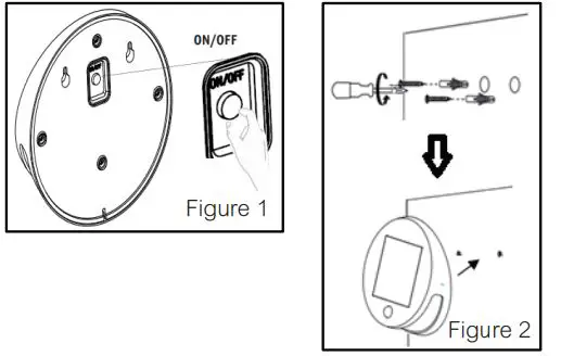 • Choose desired wall location. Drill two holes on the wall. Insert the plastic anchors and screw the screws into the wall, leaving about 2mm long thread.