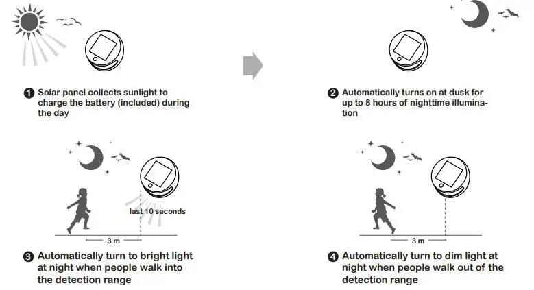 - To avoid explosion and corrosion, please keep the solar light away from from fire and humid environment