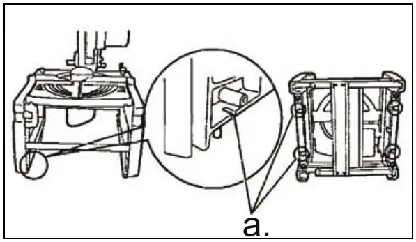 - Lock the top of the saw in lowered position when moving the saw.
