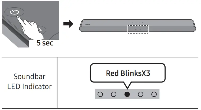 Press the Up button on the Soundbar remote control for 5 seconds.