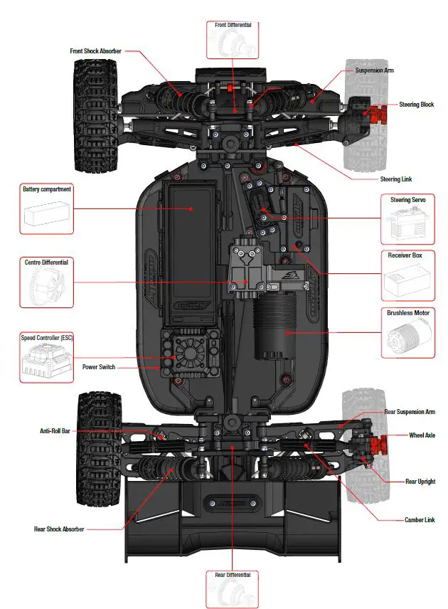 - To maintain the best performance, check that all moving parts move freely.Take all necessary precautions before, during and after using your model. You are responsible for the safe assembly, mainte-nance and use of your model. In case of any questions, contact your local reseller or contact Team Corally support for assistance.