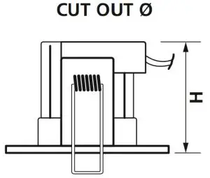 - elect the required position for the downlight. Beware of joists, water pipes and electric cables and then cut out the ceiling hole size indicated in the table below.