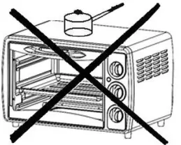![]() | Do not put anything on the oven while using it, the heat could cause deformation, cracking, etc. |